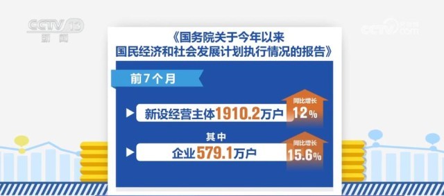 報告指出,前7個月,新設經(jīng)營主體1910.2萬戶,其中企業(yè)579.1萬戶,同比分別增長12%和15.6%;股票發(fā)行注冊制改革全面落地,前7個月共有210家企業(yè)首次公開發(fā)行(IPO)上市、融資2479億元。