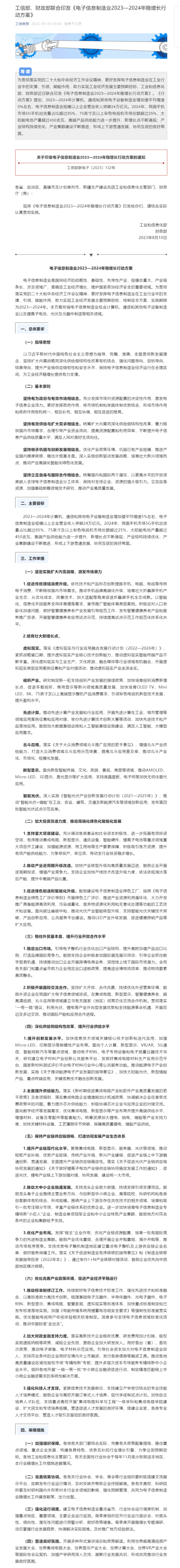 工信部、財(cái)政部聯(lián)合印發(fā)《電子信息制造業(yè)2023—2024年穩(wěn)增長(zhǎng)行動(dòng)方案》