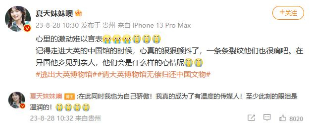 預(yù)告片發(fā)布后,up主“夏天妹妹噢”難掩激動之情,她清楚地記得自己走進(jìn)大英博物館的中國館時,心真的狠狠顫抖了。“一條條裂紋他們也很痛吧,在異國他鄉(xiāng)見到親人,他們會是什么樣的心情呢?”同時,她也為自己真正成為了有溫度的傳媒人而驕傲。