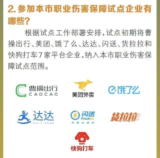 據(jù)了解,“新型社?!痹圏c(diǎn)從去年7月1日啟動(dòng)實(shí)施,第一批試點(diǎn)在曹操出行、美團(tuán)、餓了么、達(dá)達(dá)、閃送、貨拉拉、快狗打車(chē)7家平臺(tái)企業(yè),在全國(guó)7個(gè)省市開(kāi)展。