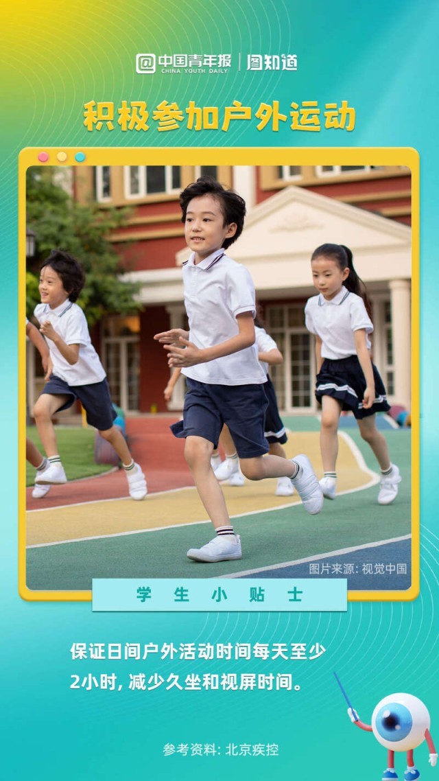 新學期護眼小課堂來了。正確讀寫姿勢是哪三個“一”?每天日間要保證多久的戶外活動時間?小學生每天睡多久合適?近日,國家疾控局綜合司印發(fā)了關(guān)于《兒童青少年近視防控公共衛(wèi)生綜合干預技術(shù)指南》的通知。一起保護視力,從小貼士里尋找答案。