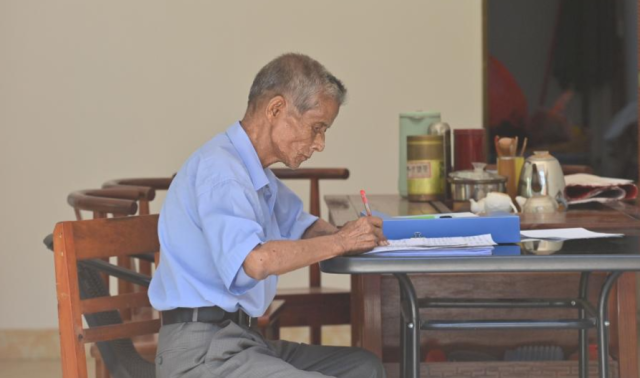 退休后他堅(jiān)持編歌、寫(xiě)書(shū)