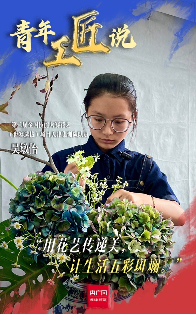 青春,是以工匠精神筑就美好生活的底色。走進(jìn)位于天津農(nóng)學(xué)院花藝(世賽選拔)項目的集訓(xùn)現(xiàn)場,生機(jī)盎然、芬芳馥郁,天津集訓(xùn)隊隊員吳敏怡正在挑選花材和花器,為每一件作品賦予一番獨特的意境。從2023年5月以來,吳敏怡每天要與花相伴12個小時,在審美及技術(shù)水平上的提高也讓她很有成就感。對于本次比賽,她也充滿期待:“我的目標(biāo)是起碼能拿一個優(yōu)勝獎,也是為了突破自己,讓自己的花藝技術(shù)更上一層樓。”她說,她也將用花藝傳遞生活中的美,讓生活五彩斑斕。
