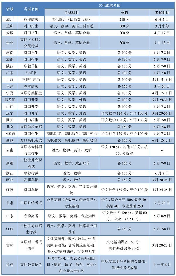 截至2021年,姜蓓佳博士收集到的各省“職教高考”的名稱、內(nèi)容、分值、時間。摘自姜蓓佳博士論文《職教高考制度構(gòu)建研究》