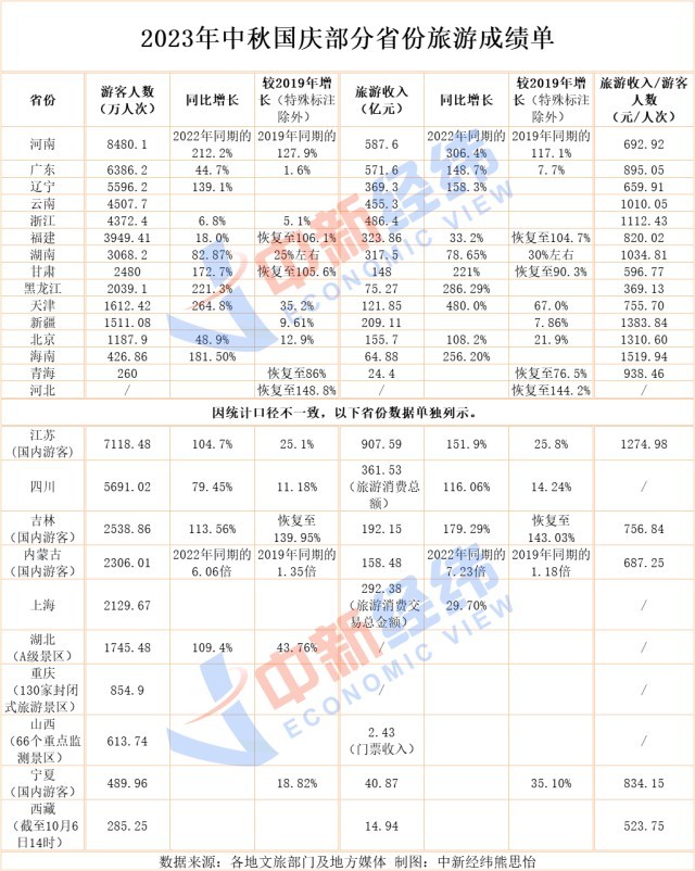 25省份中秋國慶旅游成績單:河南攬客居首,江蘇吸金最多