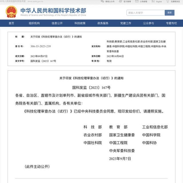 中國(guó)青年報(bào)客戶端北京10月8日電(中青報(bào)·中青網(wǎng)記者 張茜)記者今天從科技部網(wǎng)站獲悉,科技部、教育部、工業(yè)和信息化部等10部門(mén)聯(lián)合發(fā)布《科技倫理審查辦法(試行)》,對(duì)科技倫理審查主體、審查程序、監(jiān)督管理等內(nèi)容作出明確規(guī)定。