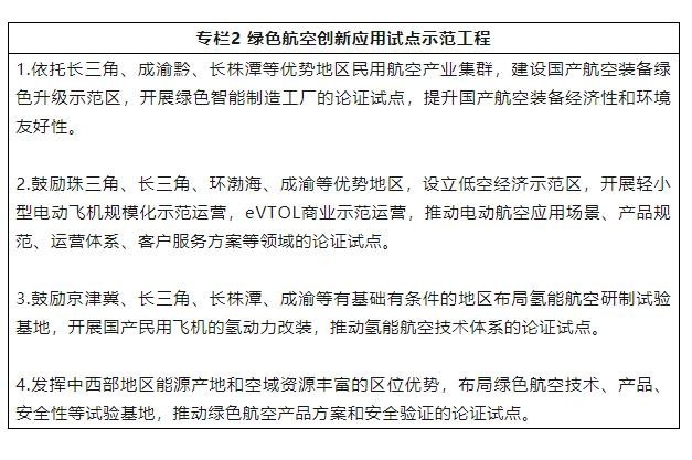 7.推動(dòng)新能源航空器區(qū)域應(yīng)用試點(diǎn)示范。依托優(yōu)勢地區(qū),建設(shè)國產(chǎn)航空裝備綠色升級示范區(qū)。鼓勵(lì)各地區(qū)結(jié)合區(qū)域經(jīng)濟(jì)發(fā)展基礎(chǔ)和需求,開展電動(dòng)通航飛機(jī)、eVTOL試點(diǎn)示范應(yīng)用,探索技術(shù)和裝備體系、應(yīng)用場景、商業(yè)運(yùn)營新模式。鼓勵(lì)有基礎(chǔ)有條件的地區(qū)布局綠色航空關(guān)鍵技術(shù)、產(chǎn)品方案、安全驗(yàn)證等試驗(yàn)基地。