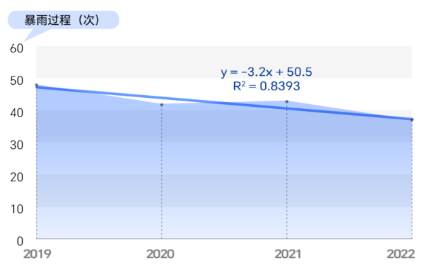 數(shù)據(jù)統(tǒng)計顯示,2012年至2022年,我國暴雨發(fā)生次數(shù)走勢振蕩,并沒有較為明顯的增加趨勢。并且自2019年以來,我國暴雨發(fā)生次數(shù)還有緩慢減少的趨勢。