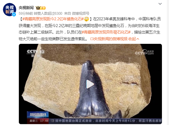 在2023年卓奧友峰科考中,中國(guó)科考隊(duì)員獲得重大發(fā)現(xiàn),在距今2.2億年的三疊紀(jì)晚期地層中發(fā)現(xiàn)鯊魚化石,為當(dāng)時(shí)的6級(jí)海洋生態(tài)鏈補(bǔ)上第二級(jí)缺環(huán)。此外,隊(duì)員們?cè)?青藏高原發(fā)現(xiàn)異形菊石化石#,描繪出第五次生物大滅絕前一些生物類群已發(fā)生遺傳紊亂。