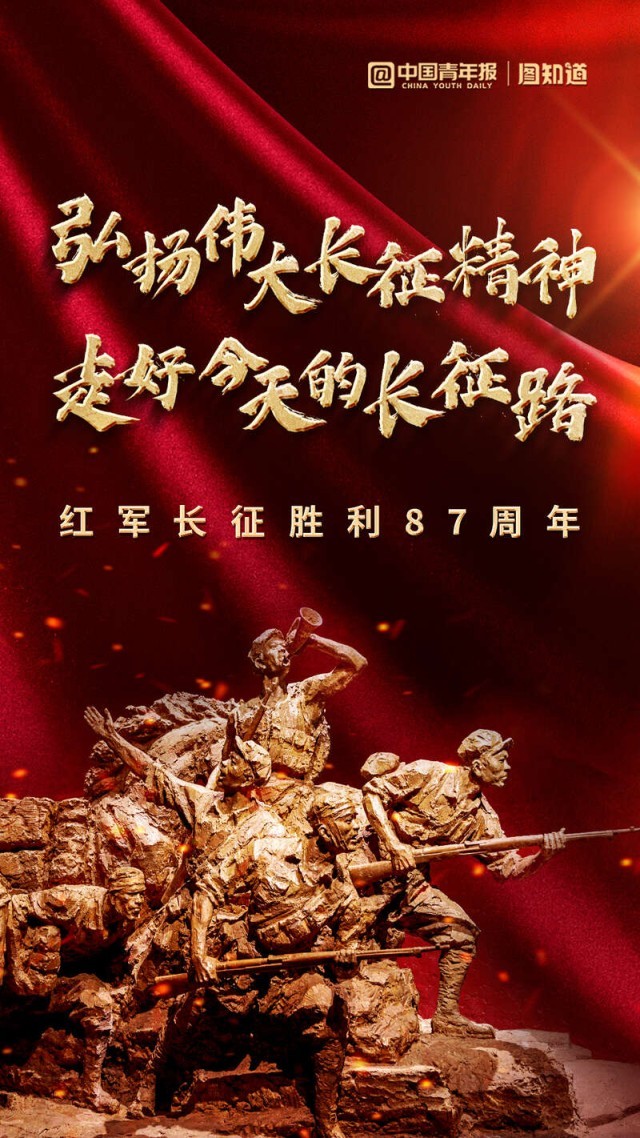 從1934年10月至1936年10月,紅軍第一、第二、第四方面軍和第二十五軍進(jìn)行了偉大的長征。中國共產(chǎn)黨領(lǐng)導(dǎo)紅軍,以非凡的智慧和大無畏的英雄氣概,戰(zhàn)勝千難萬險(xiǎn),付出巨大犧牲,勝利完成震撼世界、彪炳史冊(cè)的長征。紀(jì)念紅軍長征勝利87周年,致敬革命先輩,偉大長征精神始終閃耀著火熱的光芒!
