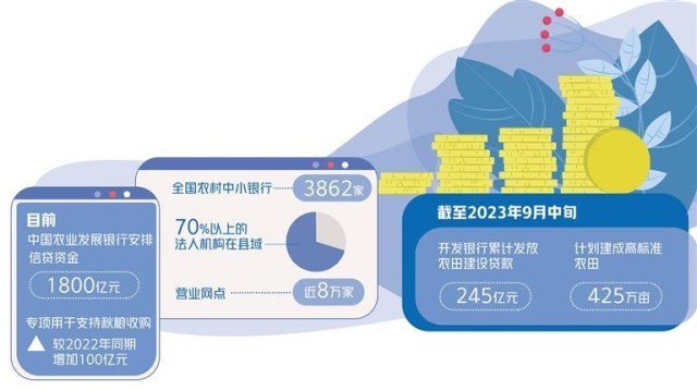 “下一步,開發(fā)銀行將持續(xù)發(fā)揮開發(fā)性金融功能作用,聚焦農(nóng)業(yè)基礎(chǔ)設(shè)施精準(zhǔn)補(bǔ)短板、強(qiáng)弱項(xiàng),用好農(nóng)田建設(shè)專項(xiàng)貸款,優(yōu)化信貸資源配置,堅(jiān)持讓利于農(nóng),為高標(biāo)準(zhǔn)農(nóng)田建設(shè)提供更有力的金融支持。”該負(fù)責(zé)人表示,截至2023年9月中旬,開發(fā)銀行累計(jì)發(fā)放農(nóng)田建設(shè)貸款245億元,計(jì)劃建成高標(biāo)準(zhǔn)農(nóng)田425萬(wàn)畝,其中2023年發(fā)放53億元,重點(diǎn)支持了吉林、江蘇、四川、廣西、寧夏等省市的高標(biāo)準(zhǔn)農(nóng)田建設(shè)和農(nóng)田基礎(chǔ)設(shè)施改造提升工程。