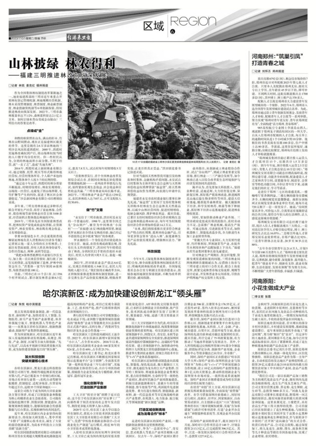 “首張林票發(fā)行、首個(gè)全國(guó)林業(yè)改革發(fā)展綜合試點(diǎn)市、首創(chuàng)國(guó)有林場(chǎng)差異化績(jī)效管理激勵(lì)機(jī)制……一系列改革舉措先行先試,始終緊扣實(shí)現(xiàn)生態(tài)效益、社會(huì)效益和百姓收益共贏?!比魇辛謽I(yè)局局長(zhǎng)陳平說(shuō),2022年,三明市林業(yè)產(chǎn)業(yè)總產(chǎn)值達(dá)1258億元,農(nóng)民涉林收入達(dá)7107元,占可支配收入的30.6%。