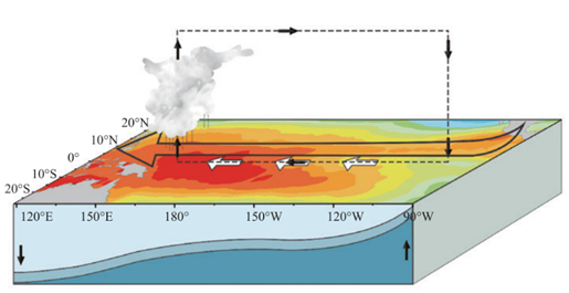 熱帶太平洋海洋大氣狀態(tài)示意圖(暖色系代表海溫偏暖,冷色系代表海溫偏冷,顏色越深,偏暖/冷的程度越大,圖片引自《中國氣候》,氣象出版社)