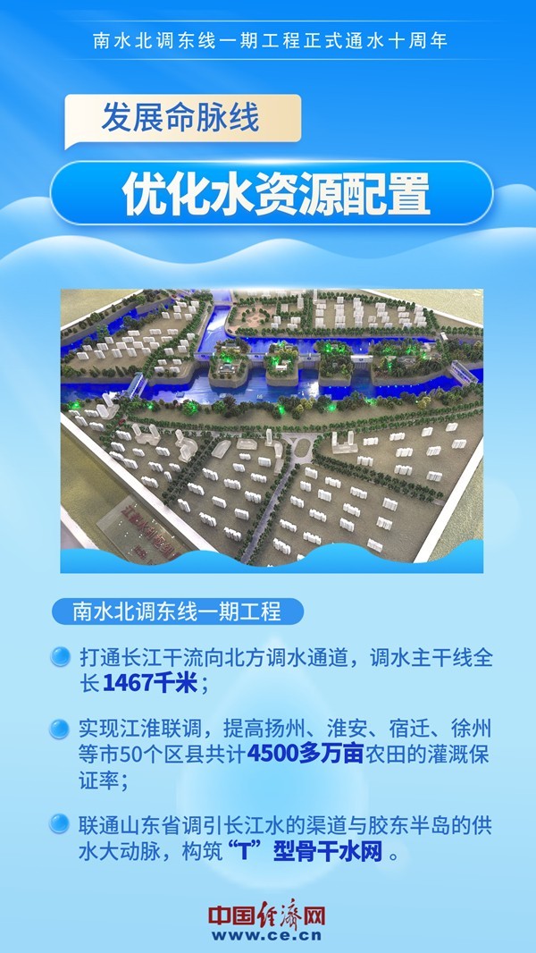 10年來,長江水、淮河水、黃河水等水系構(gòu)筑起的縱橫水網(wǎng),由一渠清水串連,鋪陳在東方大地上,連接起江蘇、安徽、山東3省的23個地級市和其轄內(nèi)的101個縣(市、區(qū))用水需求,惠及沿線超6800萬人。