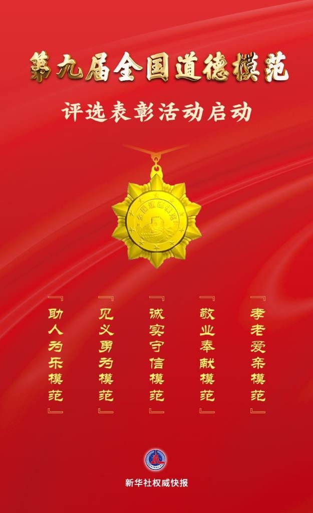 據(jù)悉,第九屆全國(guó)道德模范分為“助人為樂(lè)模范”“見(jiàn)義勇為模范”“誠(chéng)實(shí)守信模范”“敬業(yè)奉獻(xiàn)模范”“孝老愛(ài)親模范”5個(gè)類別,通過(guò)群眾推薦、遴選審核、公示宣傳、投票評(píng)選等步驟評(píng)選產(chǎn)生。