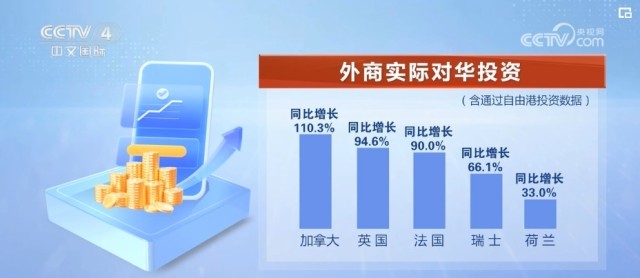 盡管部分指標(biāo)出現(xiàn)波動,但外商來華投資熱度不減。加拿大、英國、法國、瑞士、荷蘭實(shí)際對華投資同比分別增長110.3%、94.6%、90%、66.1%、33%。