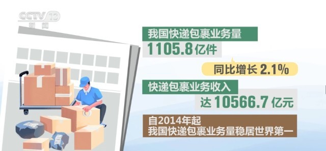 我國快遞包裹業(yè)務量同比增長2.1% 穩(wěn)居世界第一