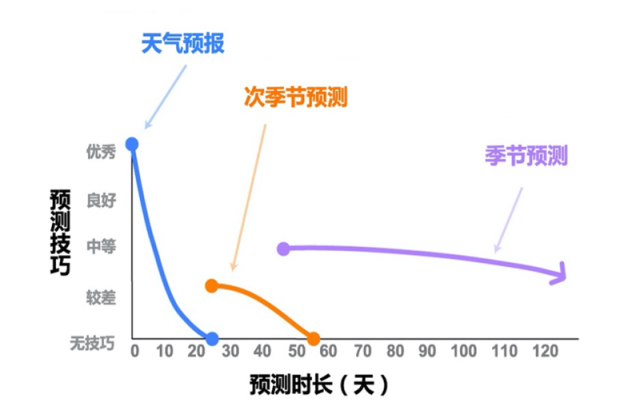 圖為天氣預(yù)報(bào)和次季節(jié)預(yù)測的區(qū)別示意。