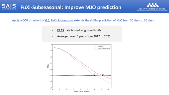 特別值得一提的是,“伏羲”次季節(jié)大模型顯著增強(qiáng)了預(yù)測馬登-朱利安振蕩(MJO)的能力,將預(yù)測MJO的時間從30天延長到了36天,這一結(jié)果超過公認(rèn)權(quán)威的ECMWF S2S的預(yù)測能力。