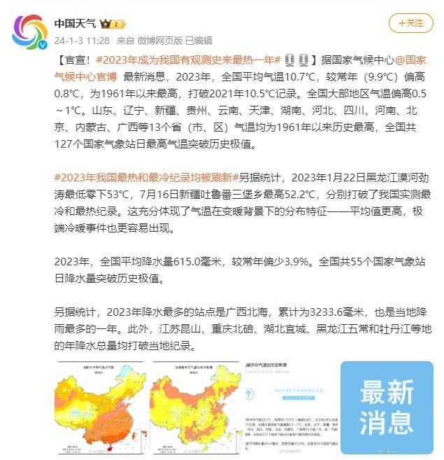 2023年我國(guó)最熱和最冷紀(jì)錄均被刷新