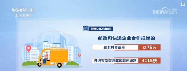 數(shù)據(jù)顯示,截至2023年底,中國郵政建成1061個(gè)縣、6010個(gè)鄉(xiāng)鎮(zhèn)的郵政處理中心和40萬個(gè)郵政及郵樂購村級站點(diǎn),郵政和快遞企業(yè)合作投遞的建制村覆蓋率達(dá)75%,開通客貨交通郵政聯(lián)運(yùn)線路4115條。
