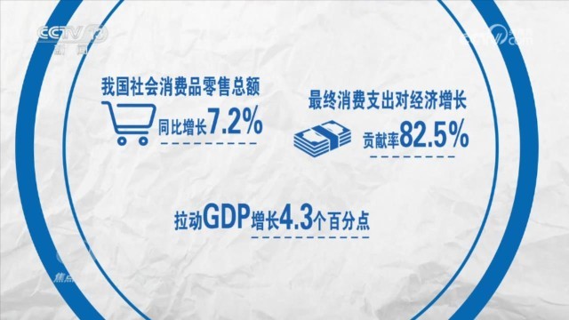 經(jīng)過短暫的波動,從7月份開始,消費再次走出了企穩(wěn)回升的曲線。2023年,我國社會消費品零售總額同比增長7.2%,最終消費支出對經(jīng)濟增長貢獻率達到82.5%,拉動GDP增長4.3個百分點。