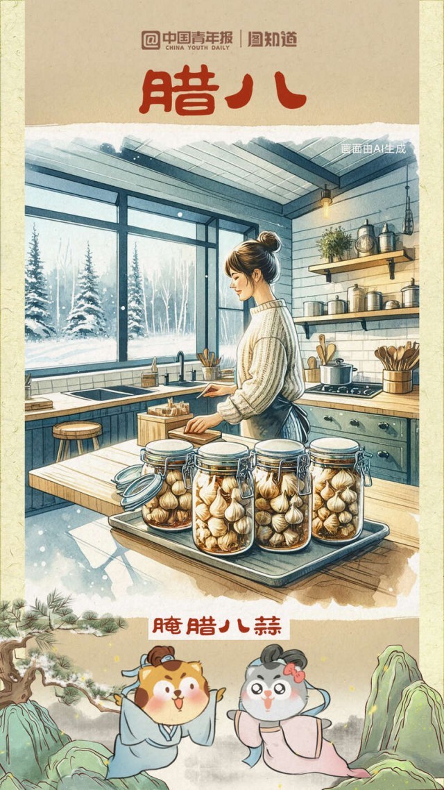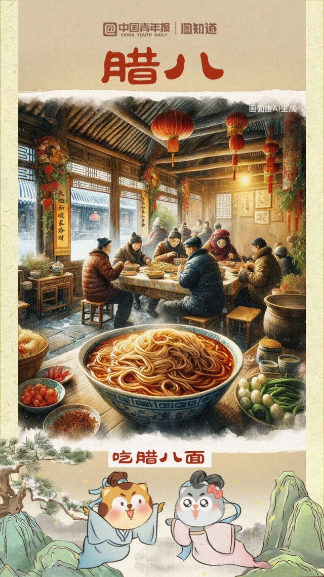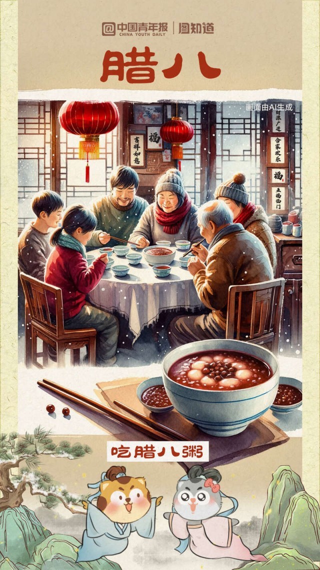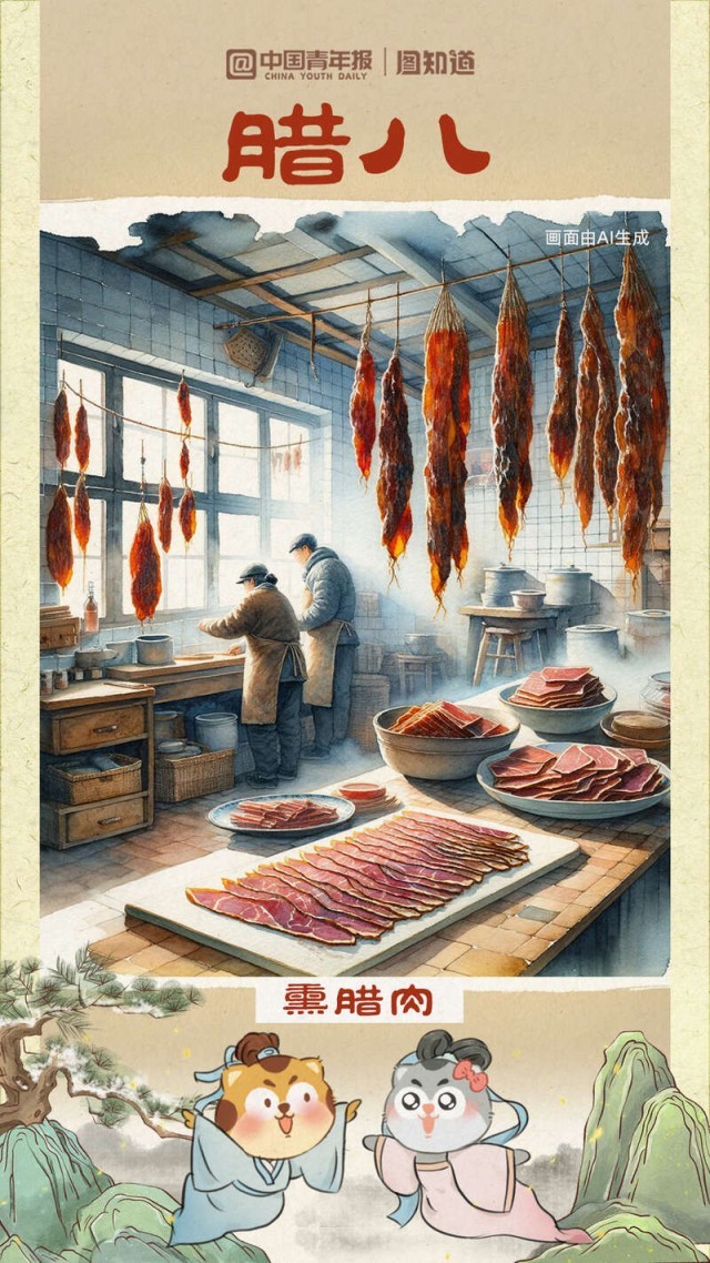 又是一年臘八時,道一聲萬事“粥”全?!坝煤?、松子、乳蕈、柿、栗之類為粥,謂之‘臘八粥’。”這是南宋周密筆下的臘八粥。你的“臘八”餐桌想擺上哪些地方的美食?①湖南湖北的熏臘肉②北方地區(qū)的臘八蒜、臘八醋③陜西關(guān)中地區(qū)臘八面……過了臘八就是年,幾幅臘八美食與你一起迎接小年。