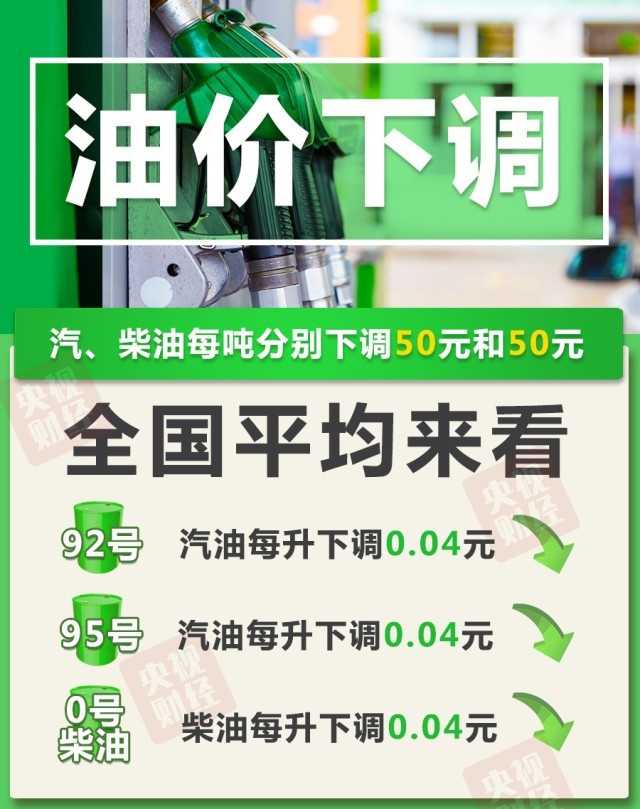 95號汽油每升下調(diào)0.04元;