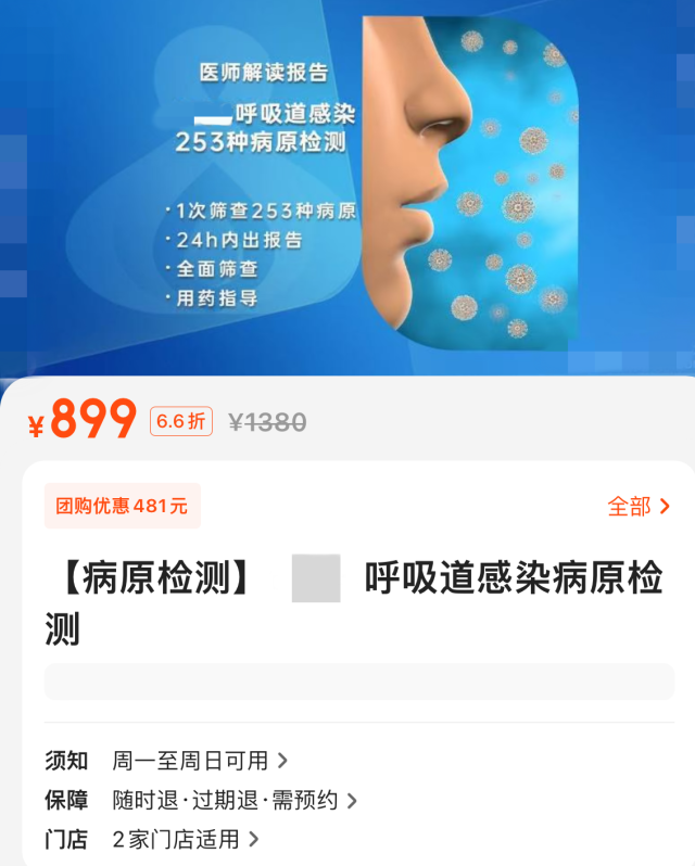 事實(shí)上,這并非種類最多的檢測方案。記者在調(diào)查中發(fā)現(xiàn),有機(jī)構(gòu)推出的呼吸道感染病原檢測一次篩查病原多達(dá)253種,原價1380元,折后也要899元。
