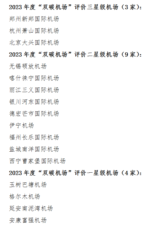 2023年度“雙碳機(jī)場(chǎng)”評(píng)價(jià)結(jié)果。(圖片由中國(guó)民用機(jī)場(chǎng)協(xié)會(huì)提供)
