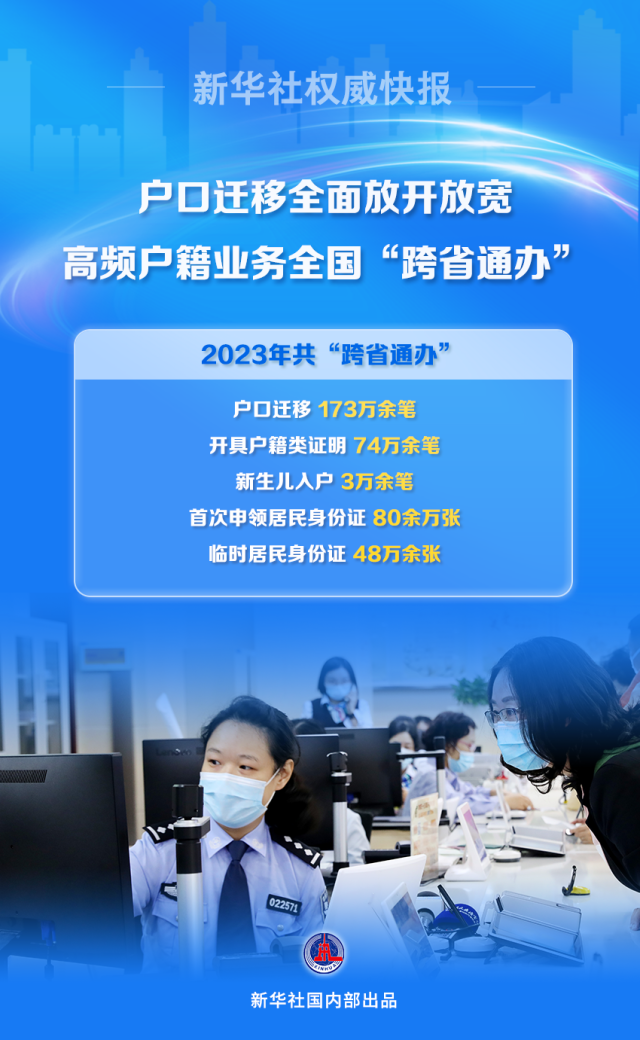 2023年共“跨省通辦”戶口遷移173萬(wàn)余筆
