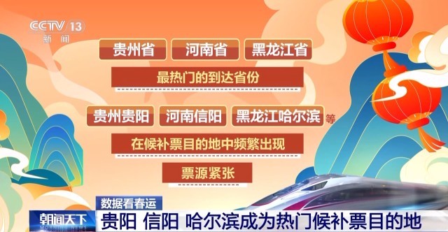 貴州省、河南省、黑龍江省是最熱門的到達(dá)省份。貴州貴陽、河南信陽、黑龍江哈爾濱等在候補(bǔ)票目的地中頻繁出現(xiàn),票源緊張。
