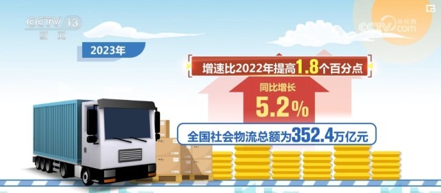央視網(wǎng)消息:中國(guó)物流與采購(gòu)聯(lián)合會(huì)2月7日公布2023年物流運(yùn)行數(shù)據(jù)。2023年,我國(guó)經(jīng)濟(jì)在波動(dòng)中恢復(fù),穩(wěn)定因素不斷累積,物流運(yùn)行環(huán)境持續(xù)改善,行業(yè)恢復(fù)整體向好,市場(chǎng)需求規(guī)?;謴?fù)加快,全年社會(huì)物流總額超過352萬億元。