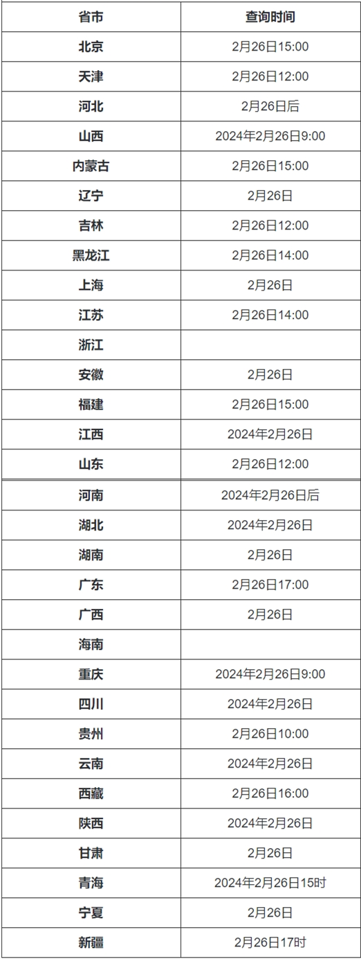 山西、重慶考生可于26日9時(shí)起查詢;天津、吉林、山東考生可在26日12時(shí)起查詢;黑龍江、江蘇考生可以在26日14時(shí)起查詢;北京、福建、青海、內(nèi)蒙古考生可于26日15時(shí)起查詢;廣東、新疆考生可于26日17時(shí)起查詢。詳見>>2024研考初試成績(jī)查詢時(shí)間匯總
