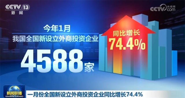 今年1月,我國(guó)全國(guó)新設(shè)立外商投資企業(yè)4588家,同比增長(zhǎng)74.4%。制造業(yè)實(shí)際使用外資金額增長(zhǎng)20.5%,其中高技術(shù)制造業(yè)實(shí)際使用外資增長(zhǎng)40.6%。