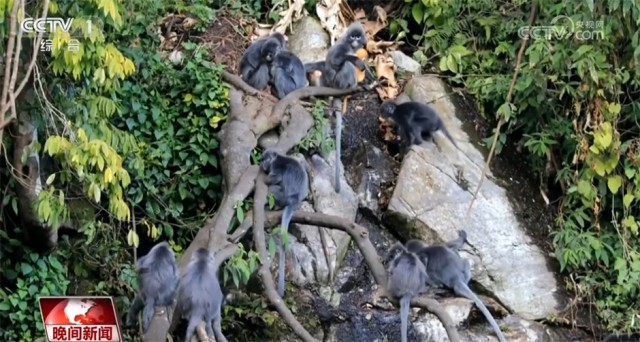 原來(lái)爭(zhēng)相帶娃是菲氏葉猴家族獨(dú)特的育兒方式。菲氏葉猴聚群而居,每個(gè)家庭成員都想和“小金猴”有更多親密接觸。此外,據(jù)護(hù)林員介紹,這些菲氏葉猴還有著“謙謙君子”的美譽(yù)。