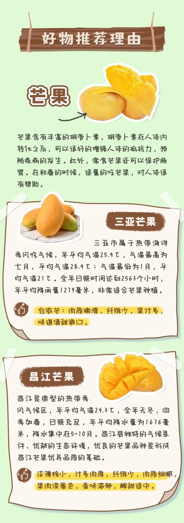 金黃色的外皮,鮮嫩的果肉,香甜的汁水,讓芒果備受人們喜愛。芒果原產(chǎn)印度和馬來西亞,據(jù)考證,芒果是被唐代的玄奘法師帶回中國的。在《大唐西域記》中記載“庵波羅果,見珍于世”。如今,我國的臺灣、廣東、廣西、海南、福建及云南等地都有芒果種植。