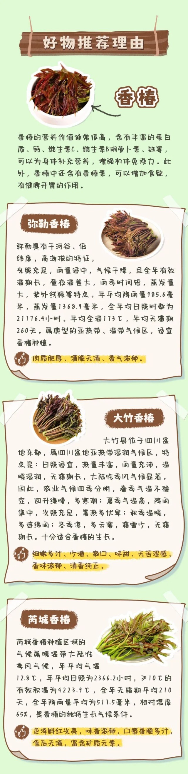 說到春天的味道,還有一樣是不得不提的,那便是香椿。雖然驚蟄時節(jié),北方大部分地區(qū)樹上的香椿還沒有發(fā)芽,但是得益于發(fā)達的物流和溫室技術,使得我們能在驚蟄時節(jié)就提前品上這一口春味。對于香椿,可以說喜歡吃的趨之若鶩,不愛吃的避之不及,那種濃郁獨特的香味用來涼拌豆腐,或是炒盤雞蛋,都是讓人吃的美滋滋的下飯好菜。