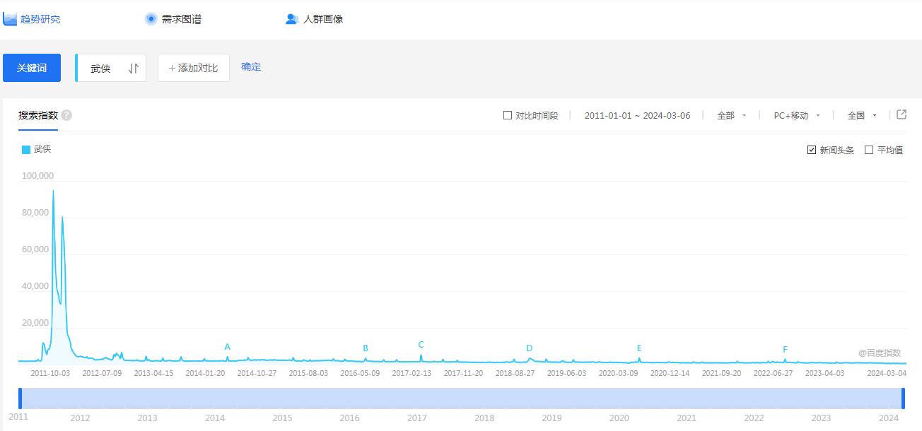 “武俠”百度指數(shù)。網(wǎng)頁截圖
