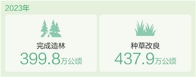 2023年,全民義務(wù)植樹深入推進(jìn)。持續(xù)推進(jìn)“互聯(lián)網(wǎng)+全民義務(wù)植樹”,全年上線發(fā)布各類盡責(zé)活動(dòng)2.4萬多個(gè),網(wǎng)絡(luò)平臺(tái)訪問量近4.4億次。國土綠化行動(dòng)扎實(shí)開展,三北工程攻堅(jiān)戰(zhàn)全面啟動(dòng)。有效保護(hù)1.72億公頃天然林資源,完成森林撫育任務(wù)105.9萬公頃,森林可持續(xù)經(jīng)營試點(diǎn)任務(wù)18.1萬公頃。截至2023年底,三大標(biāo)志性戰(zhàn)役區(qū)開工項(xiàng)目22個(gè),完成造林種草122.3萬公頃。