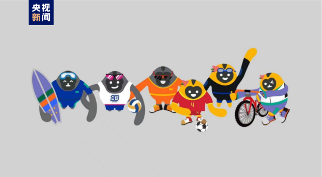 在形象色彩選擇上,沙灘排球猿,參考海浪的藍(lán)色與浪花的白色,粉色腰帶則體現(xiàn)熱情與活力;滑翔傘猿是代表勇氣的金色與代表視野的橙色的結(jié)合,展現(xiàn)極限運(yùn)動(dòng)員的能量與勇氣;沖浪猿的配色參考自碧海藍(lán)天的概念,帆船猿則參考自深海浪濤的概念,均展現(xiàn)海南豐富的海洋資源;足球猿參考中國(guó)女足的隊(duì)服顏色,突出紅敢爭(zhēng)先的拼搏精神;自行車猿是優(yōu)雅的紫色、熱帶雨林的綠色和代表無限可能的白色的結(jié)合,環(huán)島騎行,成為一道靚麗的風(fēng)景線。