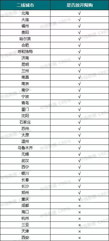 據(jù)中指研究院監(jiān)測(cè)數(shù)據(jù),截至目前,核心二線城市中,僅成都、海口、杭州、三亞、天津、西安保留部分限購政策。