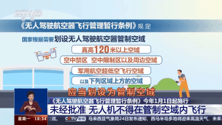 北京航空航天大學(xué)航空專家 《航空知識》主編 王亞男:《無人駕駛航空器飛行管理暫行條例》對于無人機(jī)使用的空域作出了明確規(guī)定,真高120米以上空域、限制飛行的空域等,劃設(shè)為管制空域。無人機(jī)違規(guī)采集影像等數(shù)據(jù)可能危害國家安全,無人機(jī)“黑飛”或造成不可估量經(jīng)濟(jì)損失。