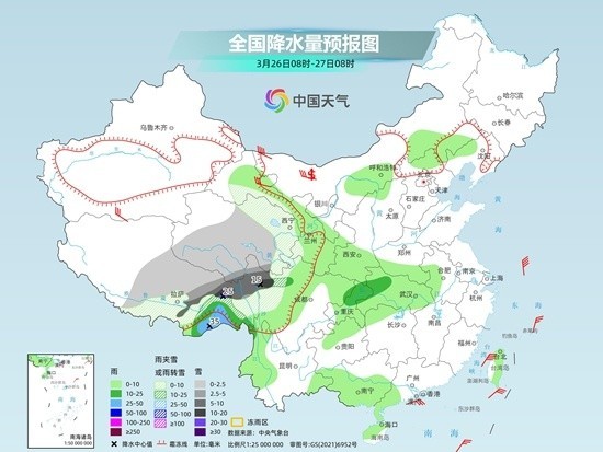 中央氣象臺預計,今天新疆北疆北部和沿天山地區(qū)、西藏中部和東北部、青海南部、甘肅東南部、川西高原北部等地部分地區(qū)有小到中雪或雨夾雪,其中,西藏東北部、青海東南部等地局部有大雪。西藏東南部、四川盆地西北部、黃淮東部、江淮、江漢大部、江南、華南北部、貴州東部等地部分地區(qū)有小到中雨,其中,安徽南部、江西中北部、浙江中部、福建西北部、湖南南部、廣西東北部等地局部有大雨。