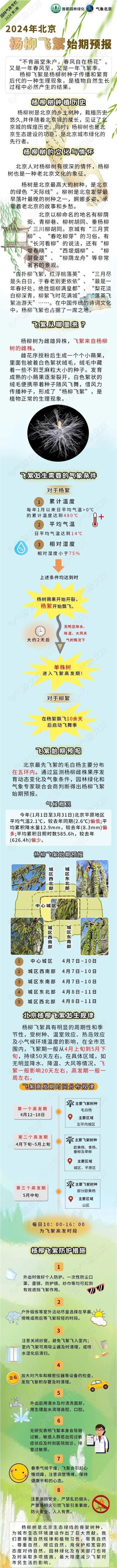 4月7日,北京市園林綠化局和北京市氣象局聯(lián)合發(fā)布了2024年北京楊柳飛絮始期預報。