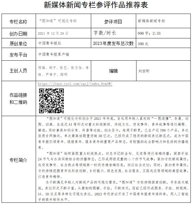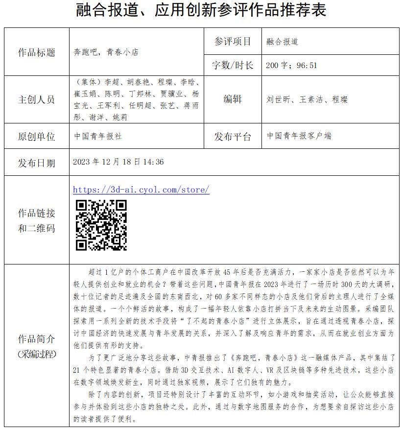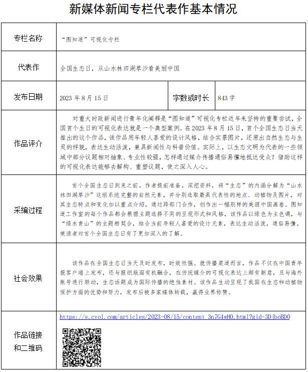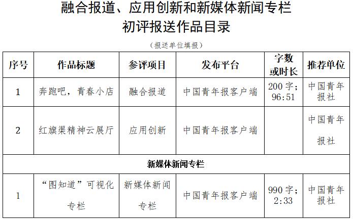 中國青年報(bào)社推薦參評(píng)第34屆中國新聞獎(jiǎng)融合報(bào)道、應(yīng)用創(chuàng)新和新媒體新聞專欄作品專項(xiàng)初評(píng)公示