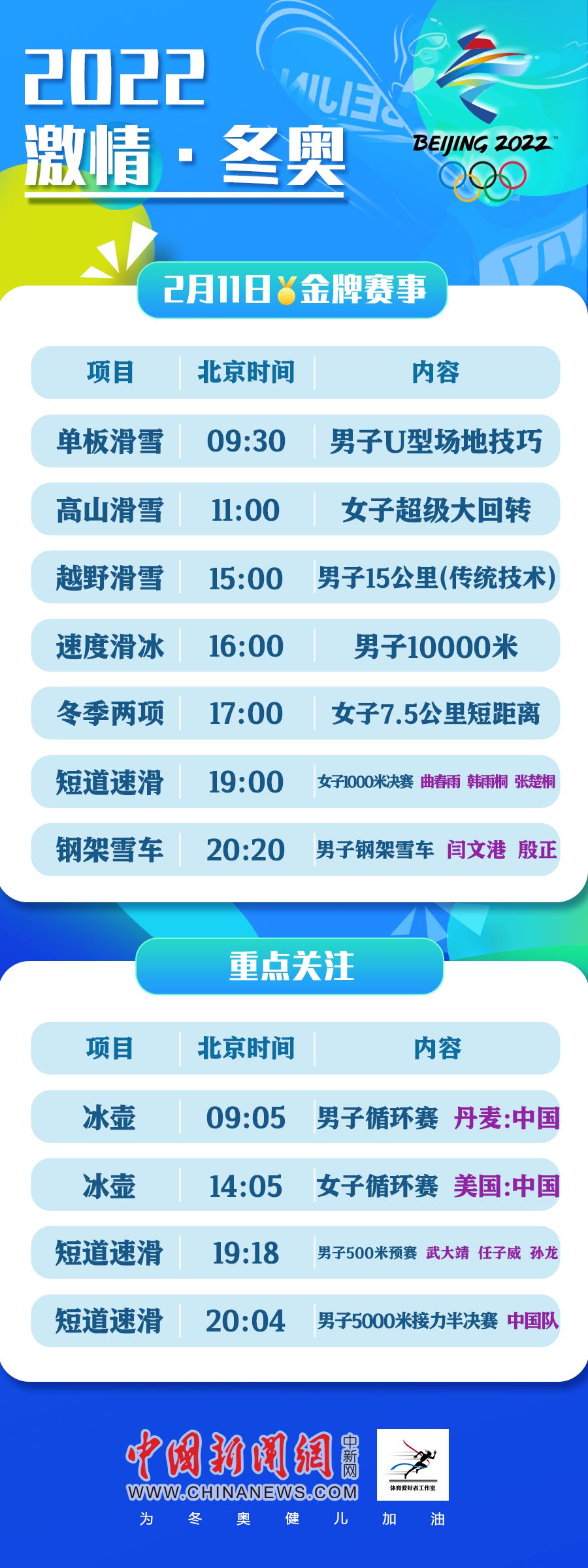 2月11日冬奧看點(diǎn):武大靖開(kāi)啟衛(wèi)冕之旅