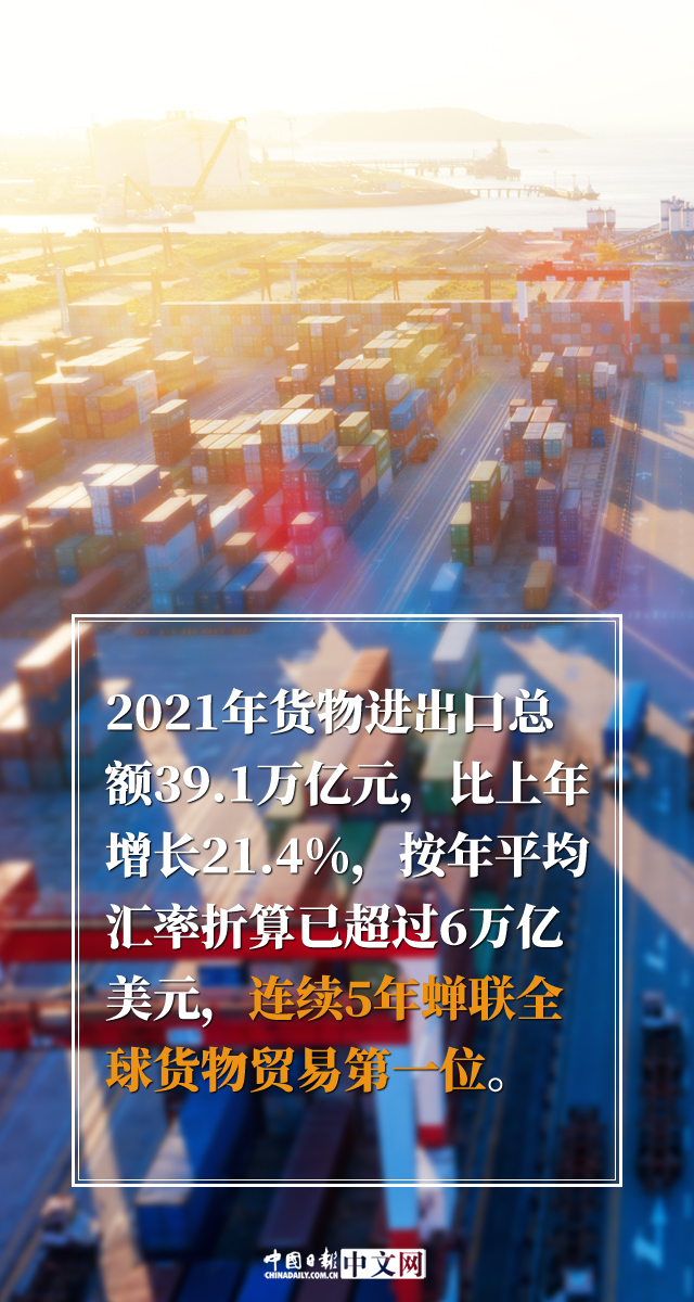 2021年,我國成功戰(zhàn)勝疫情等多重挑戰(zhàn),經(jīng)濟實力、社會生產(chǎn)力和綜合國力穩(wěn)步提高,改革開放創(chuàng)新深入推進,民生福祉持續(xù)提升,實現(xiàn)了“十四五”良好開局。最新發(fā)布的《2021年國民經(jīng)濟和社會發(fā)展統(tǒng)計公報》顯示,2021年,我國國內(nèi)生產(chǎn)總值(GDP)比上年增長8.1%,兩年平均增長5.1%,在全球主要經(jīng)濟體中名列前茅;連續(xù)5年蟬聯(lián)全球貨物貿(mào)易第一位;主要工業(yè)產(chǎn)品產(chǎn)量穩(wěn)居世界首位……我國遞出了一份亮眼的“成績單”。