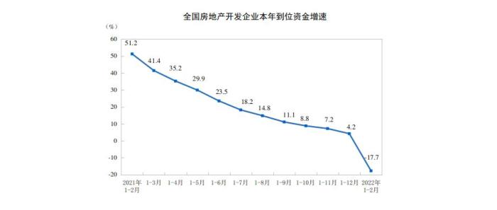 1—2月份,房地產(chǎn)開發(fā)企業(yè)到位資金25143億元,同比下降17.7%。其中,國內(nèi)貸款4105億元,同比下降21.1%;利用外資7億元,下降27.4%;自籌資金7757億元,下降6.2%;定金及預(yù)收款8027億元,下降27.0%;個(gè)人按揭貸款4124億元,下降16.9%。