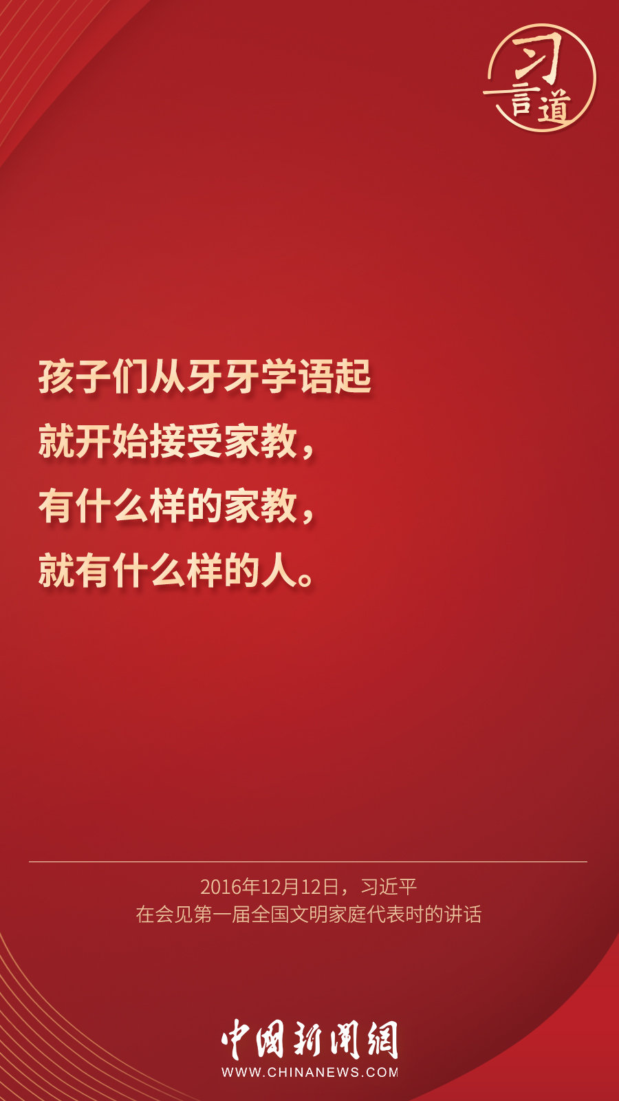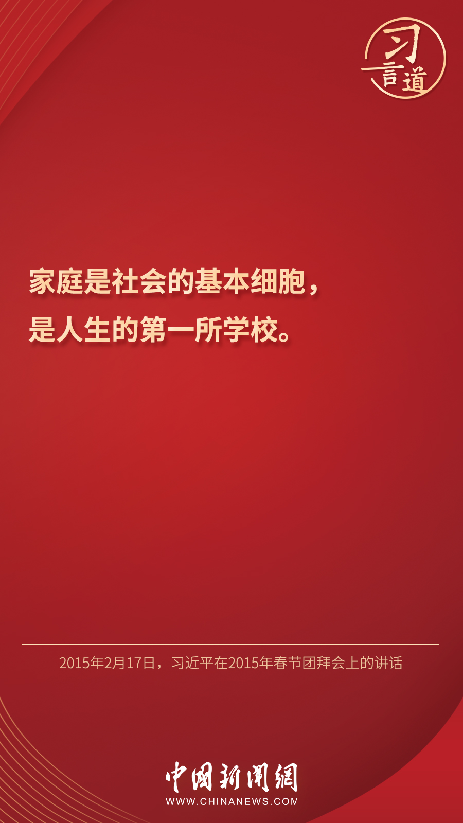 “家庭不只是人們身體的住處,更是人們心靈的歸宿?!苯陙恚暯娇倳洶l(fā)表過諸多關于重視親情、營造良好家風的重要論述,他指出——